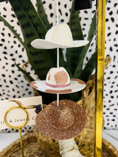 Rose gold cowboy hat car charm
