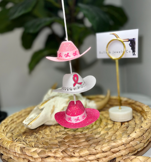 Breast cancer cowboy hat car charm