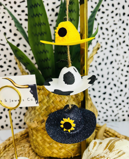 Sunflower cowboy hat car charm
